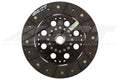 3000310 is a street rigid disc featuring premium organic materials with high copper content for better heat transfer and steel-backed lining for greater burst strength and durability. These discs are modified with reduced marcel for faster shift action to complement ACT pressure plates. The chrome-moly hub is heat-treated for strength and durability. Rivet design and materials are carefully selected for maximum strength. Lightweight, solid-hub design allows for quicker shifting and engagement. ACT's street rigid-hub discs provide race-proven performance with street manageability.