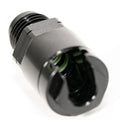 Inside the filter housing is where the real engineered features are located. The shape of the housing has been designed to promote unimpeded fuel flow through it by reducing or expanding the size of the ports inside the housing. As fuel flows from right to left, we reduce the internal volume to send fuel inward, towards the filter. As shown in the cross-section photo graphic below, the inlet and outlets are both radiused at the ends and tapered at a certain angle for optimal fuel throughput. To put it simply, we invested a lot of engineering muscle into this kit, to make it the best possible unit on the market.