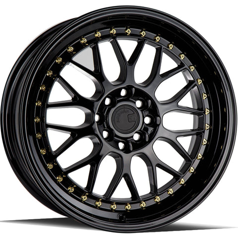 5x114.3 18x8.5 +35mm AH02 in Gloss Black w/ Gold Rivets by AodHan Wheels