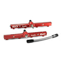 Boomba Racing fuel rails feature a larger bore diameter than stock to allow more flow. This makes it even easier for the rail to accommodate larger injectors and be perfectly fine to run full E85. They also allow the end user a lot of customization for different feed/return style set-ups. There are ports in the middle, front, and back of the rail to allow you to set up the lines in endless possibilities; out of the box is direct plug and play. We also have an NPT port on the rail which will allow you to run a fuel pressure gauge should you want.