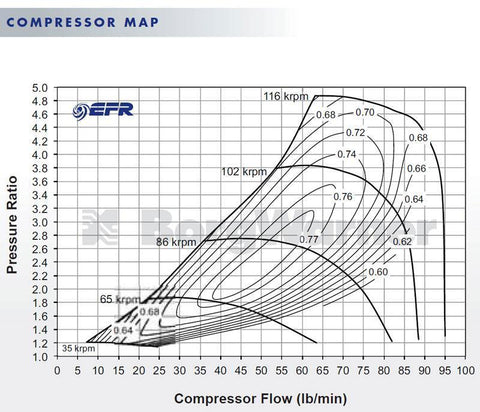EFR 9180 is the biggest, baddest, highest flowing turbo in the EFR family. Capable of a remarkable 94lb/min airflow and stable at very high boost levels, the 91mm OD compressor measures 67.7mm inducer and is a 7 blade FMW compressor.