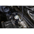 Countless hours of research and development were put into their newest Power Steering Reservoir. This isn’t as simple as putting 2 fittings on a fluid container and calling it a day. It is far more complex. The smaller fitting on the Reservoir is the fluid return from the rack. It can be sent back at pressures up to 120psi. When that hits the fluid in the reservoir it can cause extreme foaming aeration if not properly slowed down and directed. The more the steering and RPM on the car, the higher the pressures will be. This is also what commonly causes the spillover through the cap under heavy use. Most people think their fluid is boiling over when this happens but in most cases it is not just turbulence.