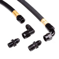 - Rack to Pump Hose is -6AN stainless steel, Teflon PTFE lined & black Hytrel coated