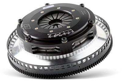 Clutch Masters twin plate systems are pure racing technology that also works well in high performance street applications. They are designed to hold tremendous horsepower and torque ratings, while retaining a very smooth operation. By using a smaller diameter clutch assembly, Clutch Masters twin plates significantly increase clamping values. The cover assembly is machined from billet aluminum and stronger than cast units. They are available in three specific pressure ratings as well as several types of friction surfaces. They flywheel is machined from Billet 6061-T6 aluminum to meet SFI spec 1.2 for competition in NHRA, NDRA, IDRC, IHRA, SCCA and NASA. Each flywheel includes a replaceable heat shield. 300-600% More Holding Power Than Stock Positive Release For Ease of High RPM Staging, and Shifting. Average Weight of Entire Assembly is Approximately 16 LBS, Averaging Well Over 50% Lighter Than OEM. Replaceable High Carbon Steel Friction Surfaces and Ring Gear Friction Disc Constructed of Bonded Organic and Kevlar Mix Installation: Direct replacement. Installation is performed exactly like the installation of a stock clutch. Includes Release Bearing, Pilot Bearing, and Pressure Plate Bolts
