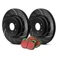 If you desire a modest brake improvement for normal speeds on any SUV or light-duty truck, EBC Stage 10 GreenStuff 2000 brake pads and GD rotor kits are for you! You'll get everything you need with these quality GreenStuff kits, which include pads, GD rotors, and caliper lube. High-efficiency EBC brake pads are built with aramid fiber, fully shimmed, slotted, and chamfered—and feature the EBC patented break-in coating for fast pad seating after installation. Pads are matched with spot-drilled and wide aperture-slotted sport vented rotors for cooler brakes and a lifetime of perfect flat and parallel pad wear; they're finished with GEOMET anti-rust coating. Wider aperture slots draw cool air under the braking area and remove dirt, dust, and debris faster. For significant improvement in braking over OE pads, order an EBC Stage 10 kit for your vehicle.