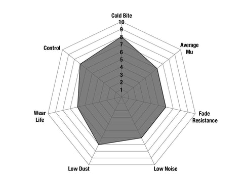 This equates to a clean pad, that lasts longer, extends disc life and emits ZERO toxicity and is a true PAD FOR THE FUTURE. The brake effect with the GG ratting is truly amazing and delivers powerful braking at first brake application.