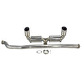 The exhaust system features a 3.0" mid-pipe that tucks up tightly against the underside of the vehicle giving you more ground clearance than any other exhaust on the market. The mid pipe connects to the muffler section using a 3.0" v-band connection. The v-band connection provides a leak-free seal and allows for a quick change race pipe for the drag strip! The muffler section consists of two straight-through resonators that route into two 4.5" slash cut stainless steel tips. Each tip is centered perfectly in the bumper opening.