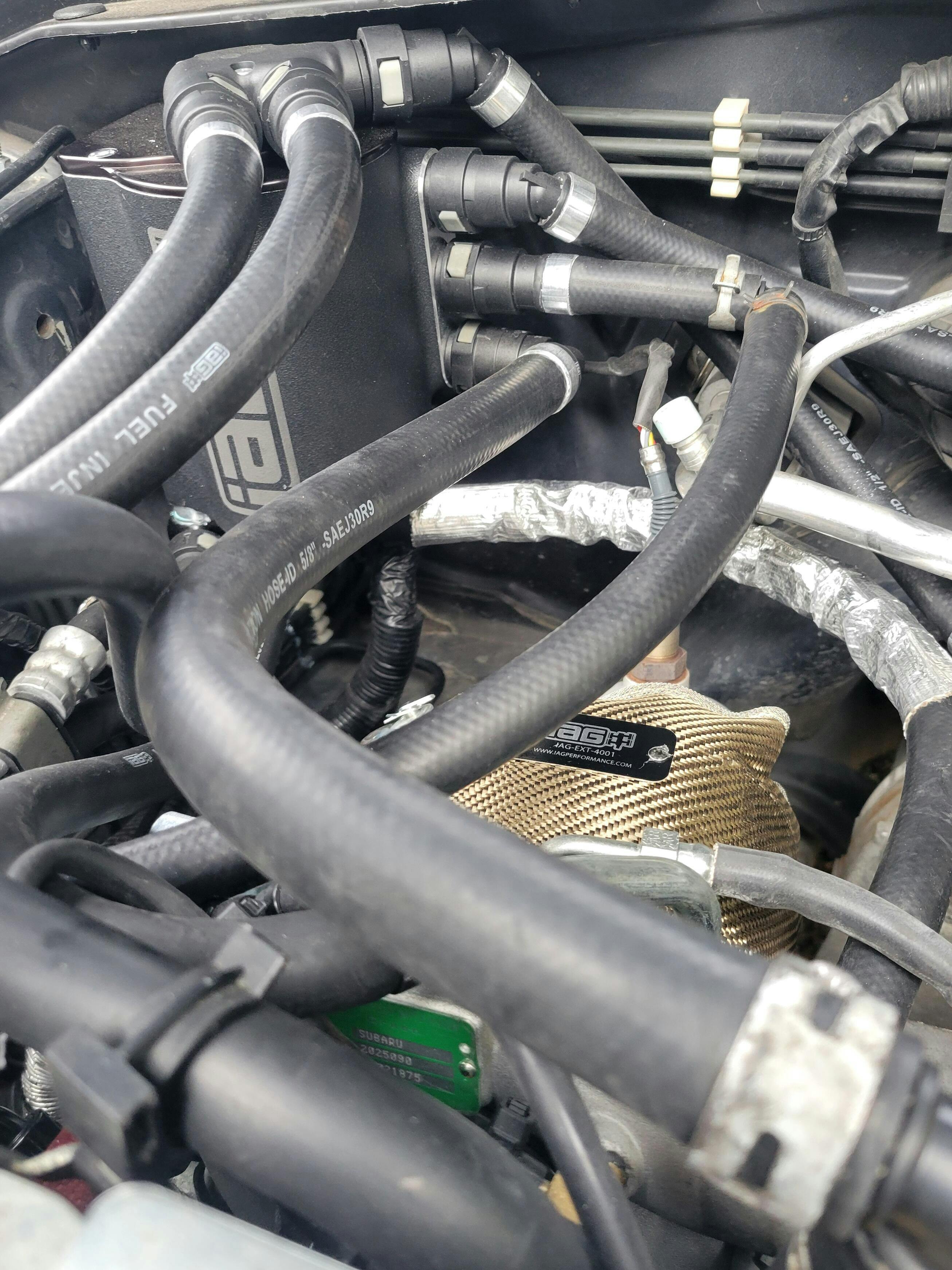 IAG turbo blanket fitted on FP Green retaining the IWG. Good fitment and coverage of the turbine housing. To get the springs attached, it's great to have a friend to assist. Having one person under the car and one person on top to connect the springs to the buttons is the hardest part of the install.