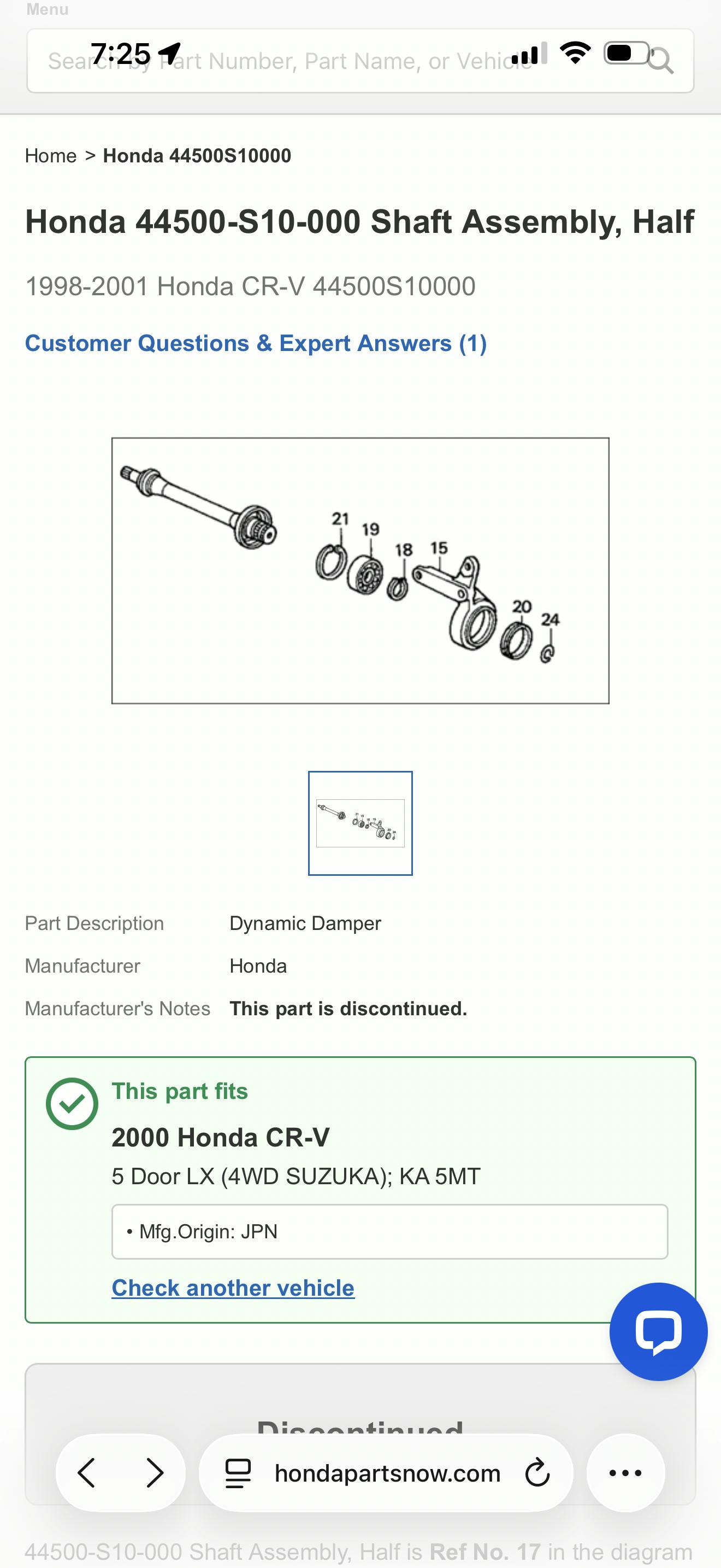 This shaft will bolt right into a 97 to 2001 Honda CRV 5-speed manual.