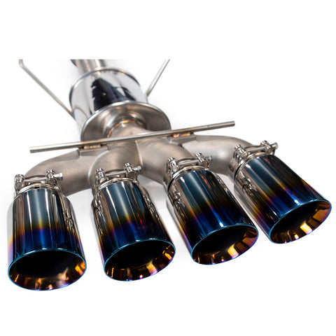 - Street - The addition of a Single Ultra Quiet tip will be our middle of the road design, quiet enough to comfortably take the car on a long road trip, while also producing a more aggressive sound when driving the car the way it's meant to be driven. The Street tip has been our most popular design among Beta testers and Staff alike. Finished with our Quad 3" Tip, this is for those of you looking to get the performance, and up the sound a bit while still keeping the neighborhood happy (For the most part). Eliminating drone at freeway speeds this is the perfect all around catback.
