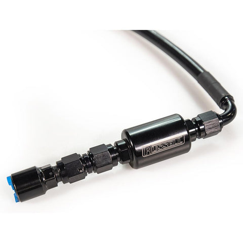 Located between the hard factory feed line and the fuel rail installation couldn’t be simpler with the push-on EFI adapter fittings. The compact billet fuel filter features a 40 micron stainless steel element that is compatible with both pump gas and E85, and flows enough to support nearly 500lph. It is a must for anyone that has upgraded the fuel pump to a non-drop in unit, as the removal of the stock pump housing will get rid of the factory fuel filter.