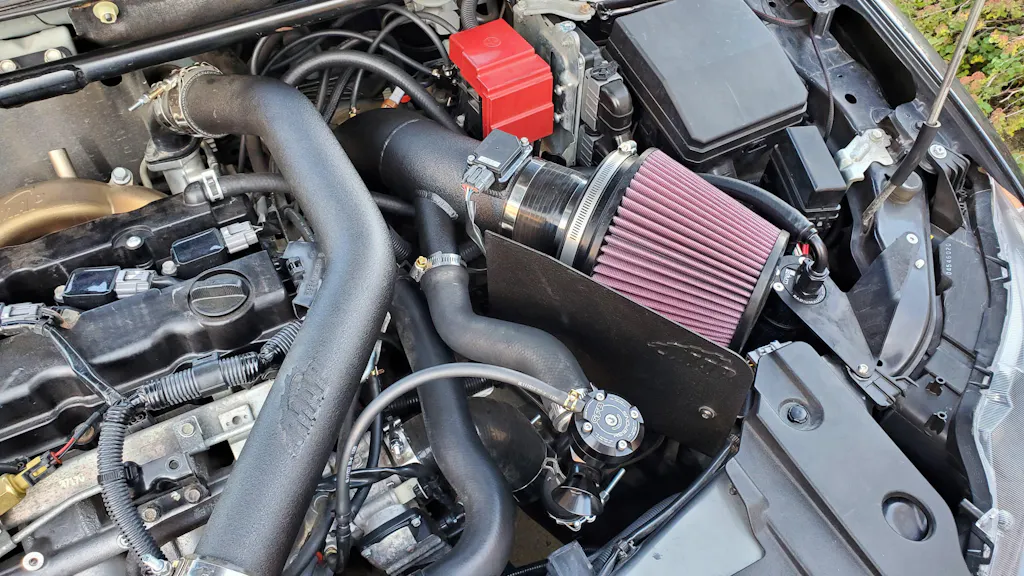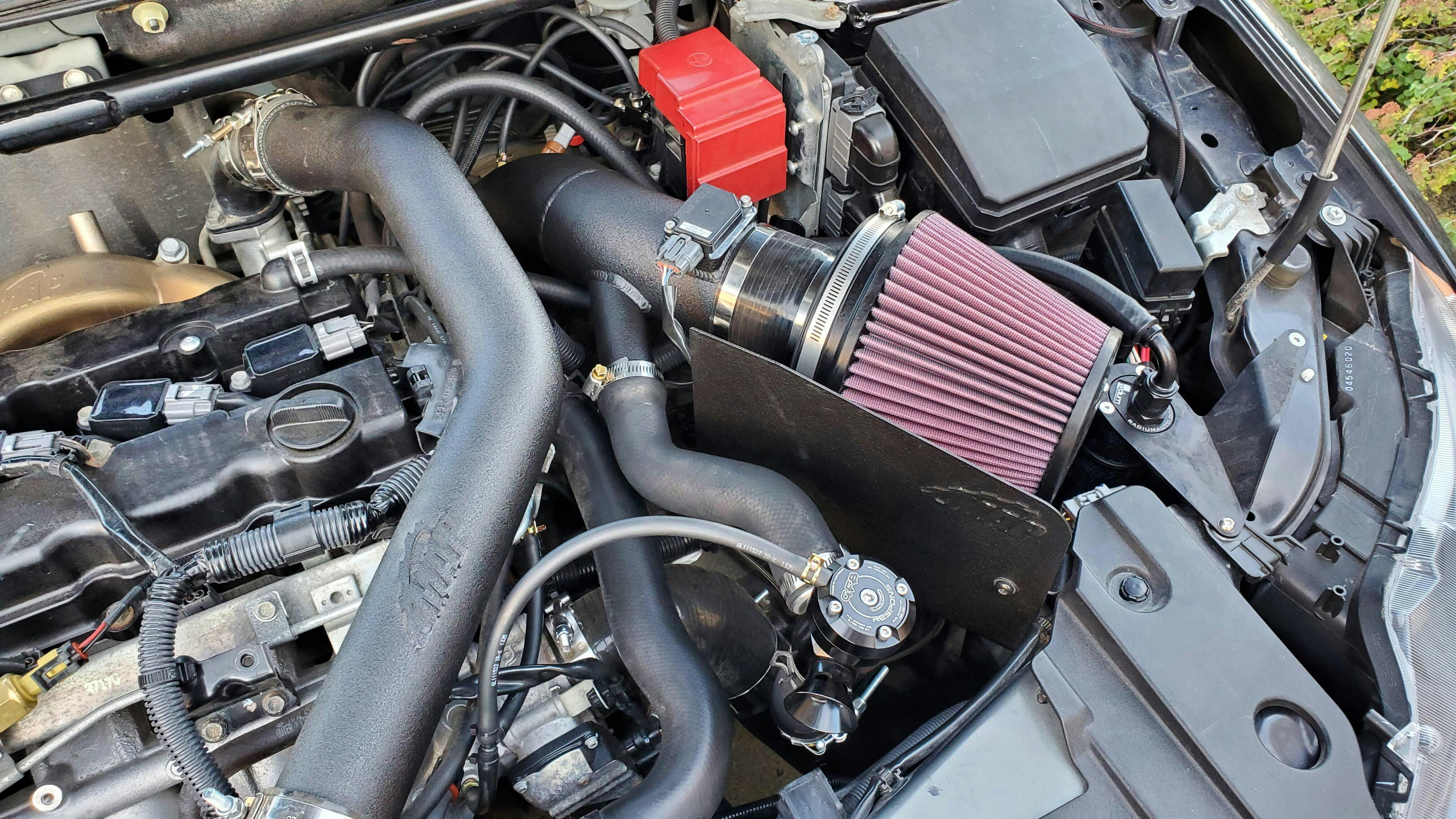 Our Rev2 short ram intake was designed for use with aftermarket lower intercooler pipes (AMS, etc.) that relocate the BOV return closer to the front of the vehicle.