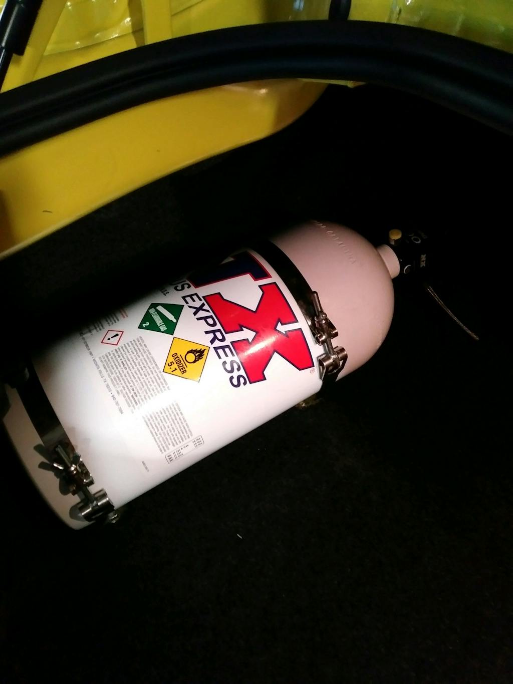 - 10lb nitrous bottle with a high flow billet aluminum Lightning 45 bottle valve