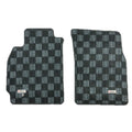 P2M MITSUBISHI EVO 8/9 Front & Rear race floor carpet mat set with race inspired checkered pattern in dark grey coloring.