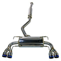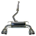 Remarks quad tip catback for the GR hatchback is a 3" catback design. Features a large single high flow muffler canister, and 3" mandrel bent piping. The midpipe includes a high flow resonator to further aid in sound suppression resulting in an subtle exhaust note. The 3.5" tips are single wall construction, and feature a slant cut design which we feel suits the OEM bumper very well. The inner tips are longer, while the outers are shorter in length to better fit the shape of the rear bumper.