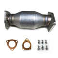 The transition from flange to high flow cat is made from precision casted 304 stainless steel. Expertly TIG Welded. Includes 300 cell count metallic substrate catalytic converter.