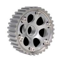 Pro Series Cam Gears enable serious tuners to optimize horsepower and torque by being able to adjust camshaft timing +/- 10 degrees, allowing them to tailor the power curve appropriately. Thanks to laser-etched timing and directional marks, precise camshaft adjustments can be made quickly and easily. Pro Series Cam Gears feature precision-machined, hard-anodized teeth to reduce premature wear with a signature, six-bolt design that eliminates gear slipping. Skunk2's lightweight design (35 percent lighter than OEM) and CNC-machined, 7075-T6 billet aluminum construction reduces rotational inertia, resulting in increased engine response and acceleration. Skunk2's adjustable cam gears have also been proven on race cars in the most extreme conditions for more than a decade.