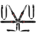 The Sparco 6-point Hans-compatible harness features 3" lap straps and shoulder straps that taper from 3 inches to 2 inches. This tapered design allows for the integration of a Hans device.