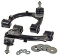 Improve droop travel, drivability and tire wear with SPC's adjustable front upper control arms. Fit bigger tires without rubbing fenders. Featuring a greasable ball joint and rubber isolated xAxis bushings, this arm is designed to correct alignment angles on standard height vehicles as well as lifted and lowered vehicles while maintaining factory ride quality. SPC's tube and plate arms are made in our facility in Colorado. Their proven design provides the strength and durability needed for the most demanding environment. These remove and replace arms are sold in pairs. - Get more droop travel: Don't let the OE ball joints or mono-ball articulation limit your travel. SPC joints are oversized and provide 80° of travel. - Get your drivability and tracking back: Your truck may have started to 'wander' after you lifted it. That is because you lost caster. Install SPC arms and get your 'drivability' back by putting your alignment in specification. - Improve tire clearance: Are your oversized tires rubbing the fenders or frame rails? SPC Adjustable Arms, in combination with the OE adjustments on the lower arm, allow you to dial in alignment spaces at the same time that you move the tire forward/outward in the wheel well by up to 1".