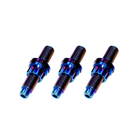 SpeedFactory Titanium studs are made of Ti 6Al-4V and incorporate a 3mm hex key tip that allows them to be easily installed using an Allen wrench. A Titanium 10mm 12-point nut and washer are included.