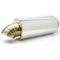 The SpeedFactory LT-5 (Lobster Tail, 5pc pie cut) Race Muffler is a straight-through design round body muffler that minimizes exhaust restriction and maximizes power output with a 4" pie cut turndown style exhaust tip.