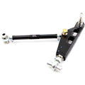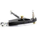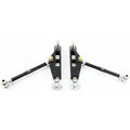 Using Billet 2024-T351 Aluminum hex SPL Parts machines and gun drills the trailing arms to reduce weight and utilize the Rotating Clamp system to easily lock down caster settings. Blue Anodized Titanium hardware shaves even more unsprung weight from the arms, without compromising strength. Anti dive adjustment is achieved with 6061-T6 spacers for the forward mounting position of the trailing/caster arm, allowing you to raise or lower this pivot point and fine-tune the balance of your car. Roll center correction is achieved with Stainless Steel spacers that work in conjunction with the heat-treated 4340 Chromoly Ball Joint Stud, allowing the ability to lower the ball joint location at the knuckle. Finally, the use of FK Rod Ends and High Misalignment Spherical Bearings eliminates the flex and binding found in the OEM control arms while allowing smooth articulation.