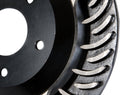 Most StopTech® Cryo Rotors are finished with black e-coating on both sides of the hat, inside the cooling vanes, and on the outside edge. E-coating is a superior electro-statically applied finish designed to withstand 400 hours of salt water exposure without rusting. This is especially important on both mounting faces of the hat where it touches the hub flange and back face of the wheel. Any accumulation of rust in these area can lead to installed lateral run out issues.
