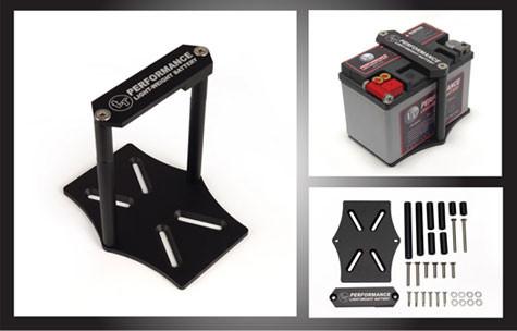 Tomioka Racing Battery Mounting Kit is a quick and easy way to mount your light-weight battery! The TR mounting kit is made of 6000 series black anodized aluminum, making it a strong, light weight, and corrosion resistant mount. Each kit comes with all the hardware you need for a quick and easy installation. The only thing you need is a nice flat surface where the self taping screw can lock the base in!